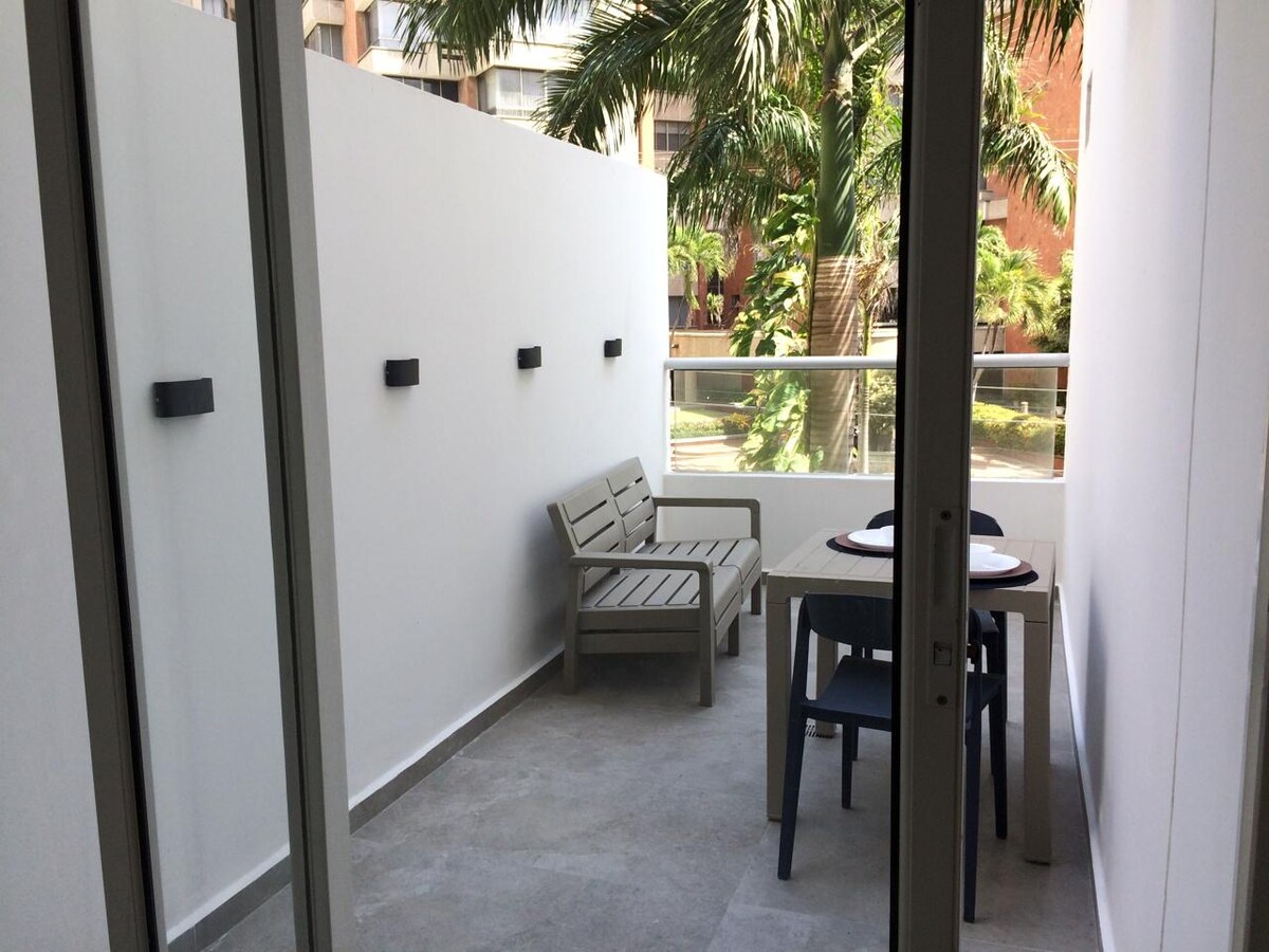 Njóttu einfaldleikans í þessari notalegu stúdíóíbúð með svölum í suðvesturhluta Barranquilla. Hún hefur: Svalir Eldhús fyrir tvo. Loftkæling í herberginu og standvifta, 900 Mbps ljósleiðaratengd þráðlaus nettenging Stafræn þvottavél. 32 tommu sjónvarp í herberginu. Venjulegt rúm með fjórum koddum. Skápur.