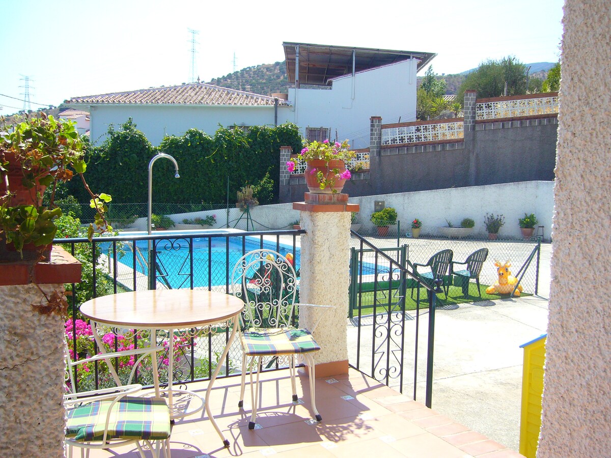 Lítið sjálfstætt sveitahús í Andalúsíustíl á ólífubýli, 100 metrum frá húsi eigendanna. Húsinu er raðað inn í stórt stúdíó með aðskildu baðherbergi og vel búnu eldhúsi með stórri einkaverönd með hægindastólum og grilli. Notkun sundlaugarinnar er frátekin fyrir gesti þessa húss. Við erum einnig með hunda sem búa á staðnum og þeir elska guets okkar. Því er mikilvægt að elska hunda líka! Þau sofa inni í húsi eigandans.