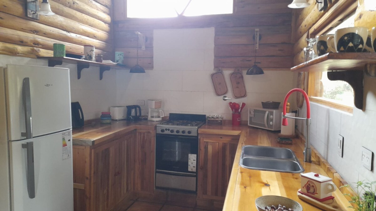 Moored á klettóttum fjallgarði Piltriquitron fjallgarðsins, með tréþilfari með draumi útsýni, byggt undir undirstöðum permaculture; múrsteinar af grasi og lifandi lofti, sólarvatnshitari, til að hámarka geisla og hita sólarinnar, það býður gestum sínum einstakt útsýni yfir Hole Valley, sem gerir þér kleift að vera í snertingu við dýr, njóta lífræns matar; í stuttu máli, töfrandi rými þar sem þú munt finna hvar á að lifa alvöru fundur með sjálfum þér.