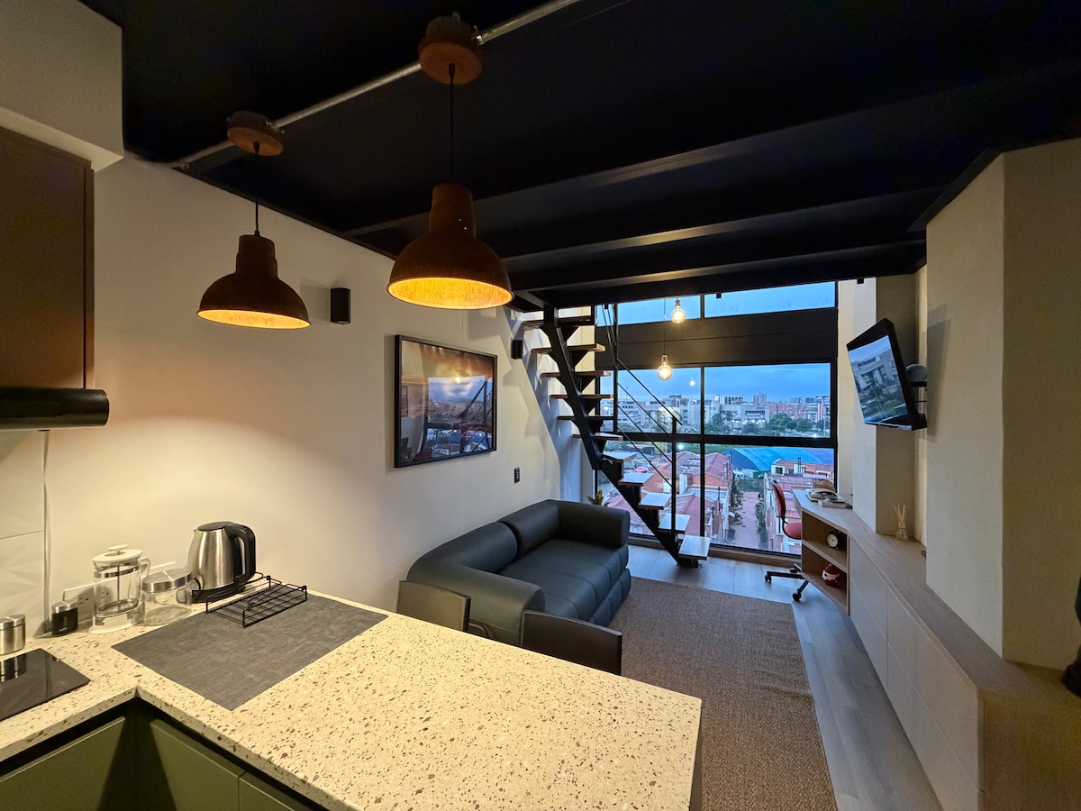 Þetta er glæný rúmgóð stúdíóloftíbúð, full af hönnun, list og lífi, með 1 stóru svefnherbergi og 1 baðherbergi. Fyrsta rýmið er með breiða og bjarta stofu með mikilli lofthæð, nútímalegum húsgögnum, listaverkum, opnu og fullbúnu eldhúsi, hagnýtu þvottahúsi og baðherbergi. Aðeins fyrir meðvitað fólk sem virðir samhljóm eignarinnar. Tilvalið fyrir sálir sem leita hvíldar og skýrleika.