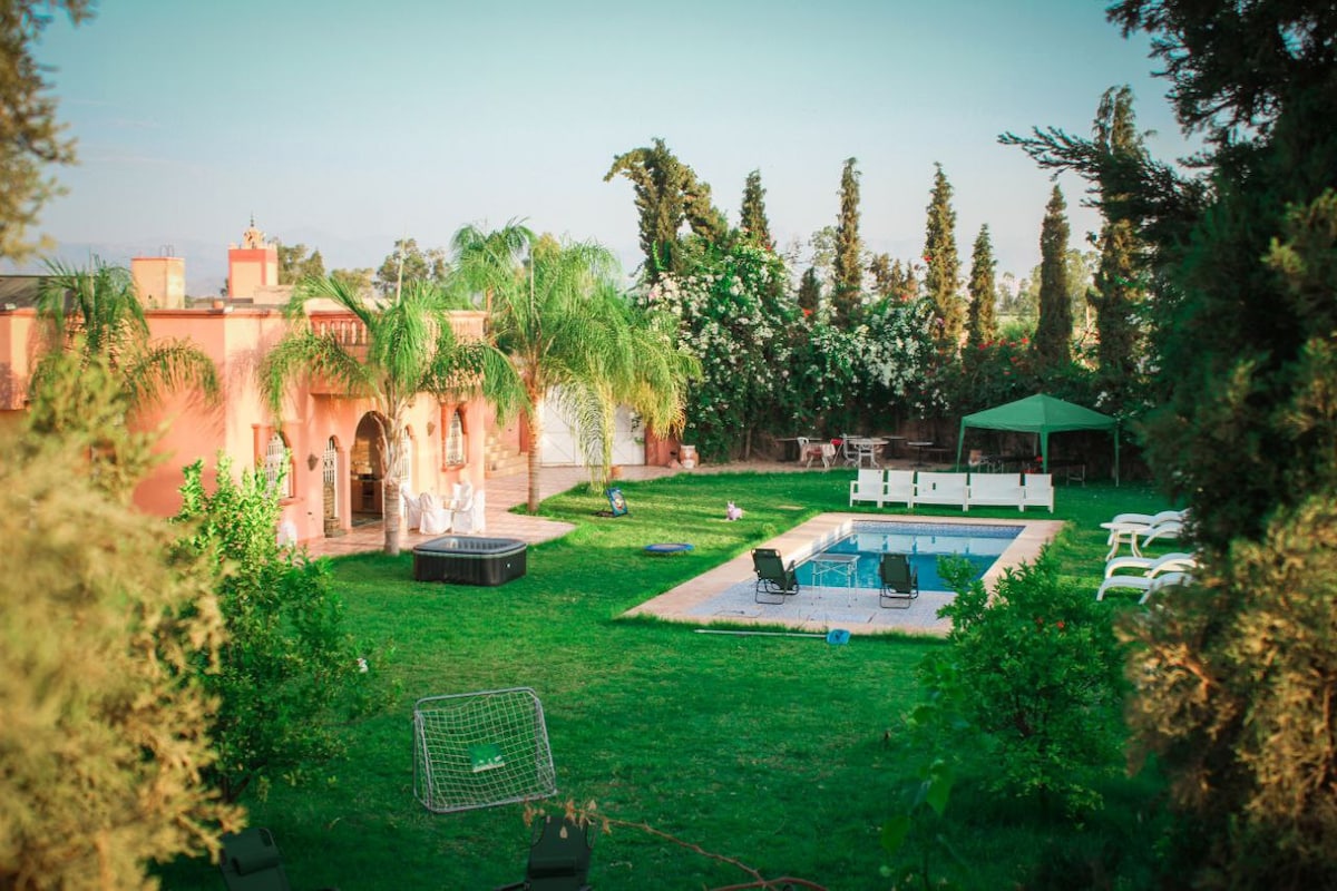 Villa með sundlaug nálægt Marrakech Mjög vel búið og vel tryggt. Mjög rólegur og friðsæll staður fyrir utan Marrakech, við hliðina á gistihúsum og nálægt öllum þægindum.