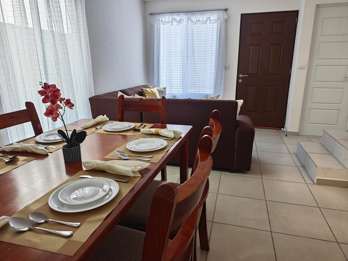 Njóttu fullkomins afdreps til að hvílast og tengjast þeim sem þú elskar mest! Notalega rýmið okkar á jarðhæðinni er með bílastæði beint fyrir framan dyrnar og stóra verönd til að slaka á. Hún er tilvalin fyrir fjölskyldur í rólegri íbúð með leikjum fyrir börn og sundlaug. Eldhúsið og hvert horn eru hönnuð til að láta þér líða eins og heima hjá þér frá því augnabliki sem þú ert. ¡Bókaðu og skapaðu ógleymanlegar minningar á sérstökum stað!