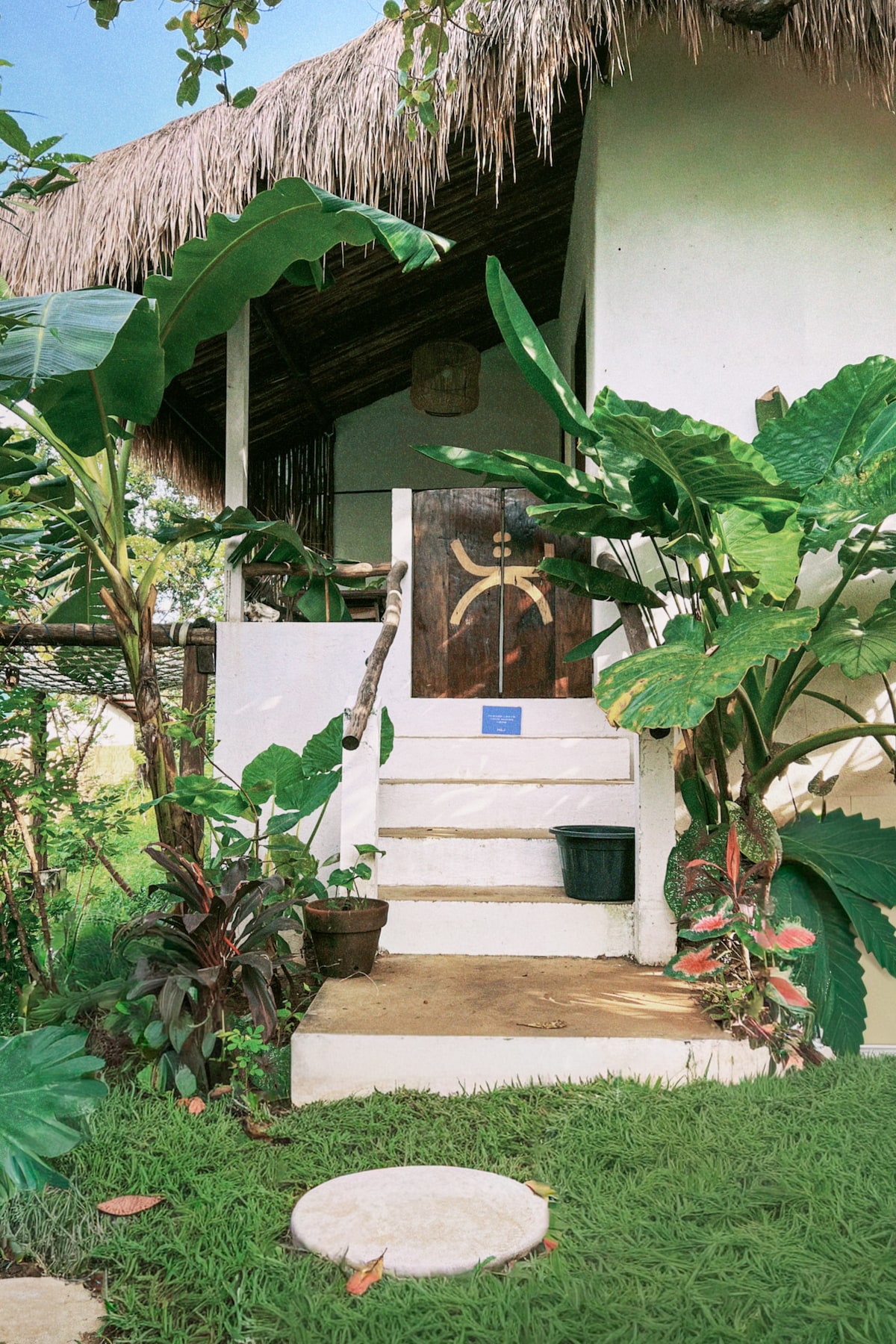 Innfædd og nútímalegt, blandað einbýlishús í miðjum framandi garði. Þægilega búin loftræstingu og sérbaðherbergi með heitu vatni. Þú munt njóta eigin verönd með hengirúmi til að slappa af og ef þig langar að elda geturðu notað útieldhúsið. Hávaði á vegum þegar mikið er að gera vatnsþrýstingurinn hér er ekki sterkur á hótelstigi en það virkar! Eftir sem áður getur þú notið hressandi sturtu
