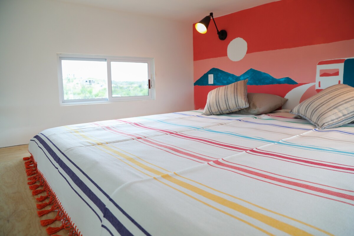 Slakaðu á á þessum einstaka og friðsæla afdrepi í hjarta Pescadero, umkringt náttúrunni, og hlustaðu á fuglasönginn. Aðeins 12 mínútna göngufjarlægð frá ströndinni. Njóttu þess að horfa á stjörnurnar á kvöldin. Þú finnur nóg af afþreyingu eins og brimbretti á sumum af bestu brimbrettastöðunum eins og San Pedrito og Cerritos, gönguferðir og fjallahjólreiðar. Það eru einnig margir veitingastaðir sem bjóða upp á fjölbreytta matargerð, listasöfn og fleira. Staðsett í nokkurra mínútna fjarlægð frá Todos Santos og nálægt Cabo.