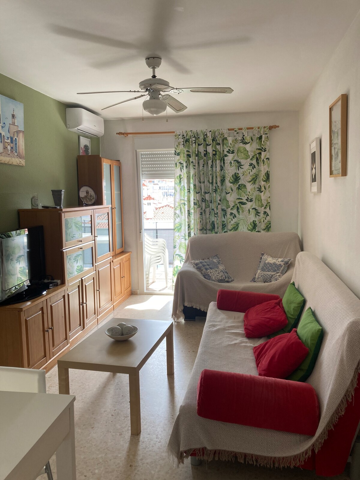 Íbúðin er rúmgóð 90m og 23-METER BÍLSKÚR með sjálfstæðri hurð. LOFTRÆSTING Í ÖLLUM HERBERGJUM . STÓR BAÐKAR. Svalir með stólum og borði, mjög vel búin 2. íbúð til að líða vel, rúmföt og bað- og handklæði, ofnar, hitari, strandhúsgögn, 4 strandstólar, stór sólhlíf, ísskápur. Búið fyrir börn að beiðni: barnastóll, barnarúm með dýnu, hljóðeftirlit, diskar, hnífapör o.s.frv. Hverfið er rólegt og með grænum svæðum.