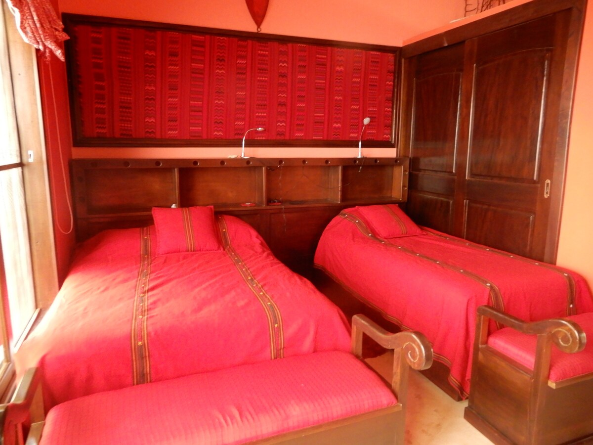40mts square with wood ceiling native to the area, ceramic floors, bathroom with local laja stone and hot water. Neyðarverksmiðja og fjölskyldustemning, tilvalin til hvíldar.
