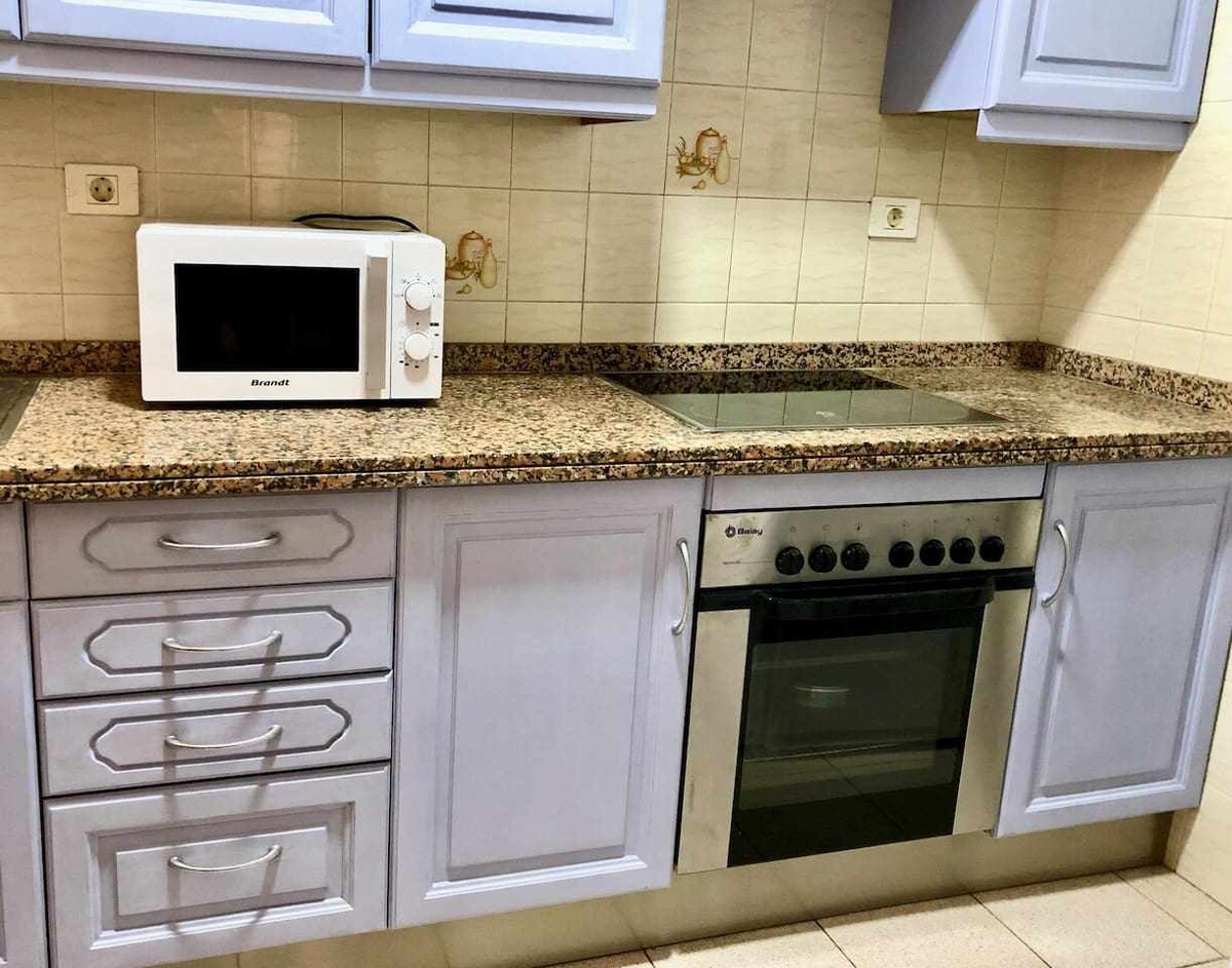 Íbúð á einum besta stað í La Palma ,El Puerto de Tazacorte Rúmgóð, þægileg og vel búin og staðsett Tilvalið fyrir fjölskyldur eða pör sem vilja njóta strandfrísins, sólarinnar og fallegra gönguleiða Íbúðin er með góðar svalir með útsýni yfir hafið og strendurnar. Rúmgóð innrétting fyrir fjóra með sjónvarpi, baðherbergi ,svefnherbergjum með tveimur einbreiðum og einu hjónarúmi, eldhúsi og borðstofu.
