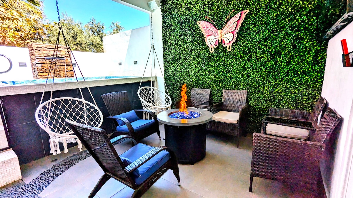 Upplifðu lúxus í vínhéraði Mexíkó! Glæsilega 5 rúma/4 baðherbergja nútímalega heimilið okkar býður upp á fullkomna blöndu af þægindum og afþreyingu. Fáðu þér hratt þráðlaust net, 8 snjallsjónvörp með Netflix og Disney+, líkamsræktarstöð og Alexa hátalara. Slakaðu á í upphitaða nuddpottinum eða skemmtu þér í spilakassanum, fótboltanum og grænu. Útivistarfólk mun elska gasgrillið og eldstæðið. Loftstýrðar innréttingar tryggja þægindi allt árið um kring. Örugg bílastæði fyrir fjóra bíla. Þægileg staðsetning nálægt mörkuðum og þægindum.