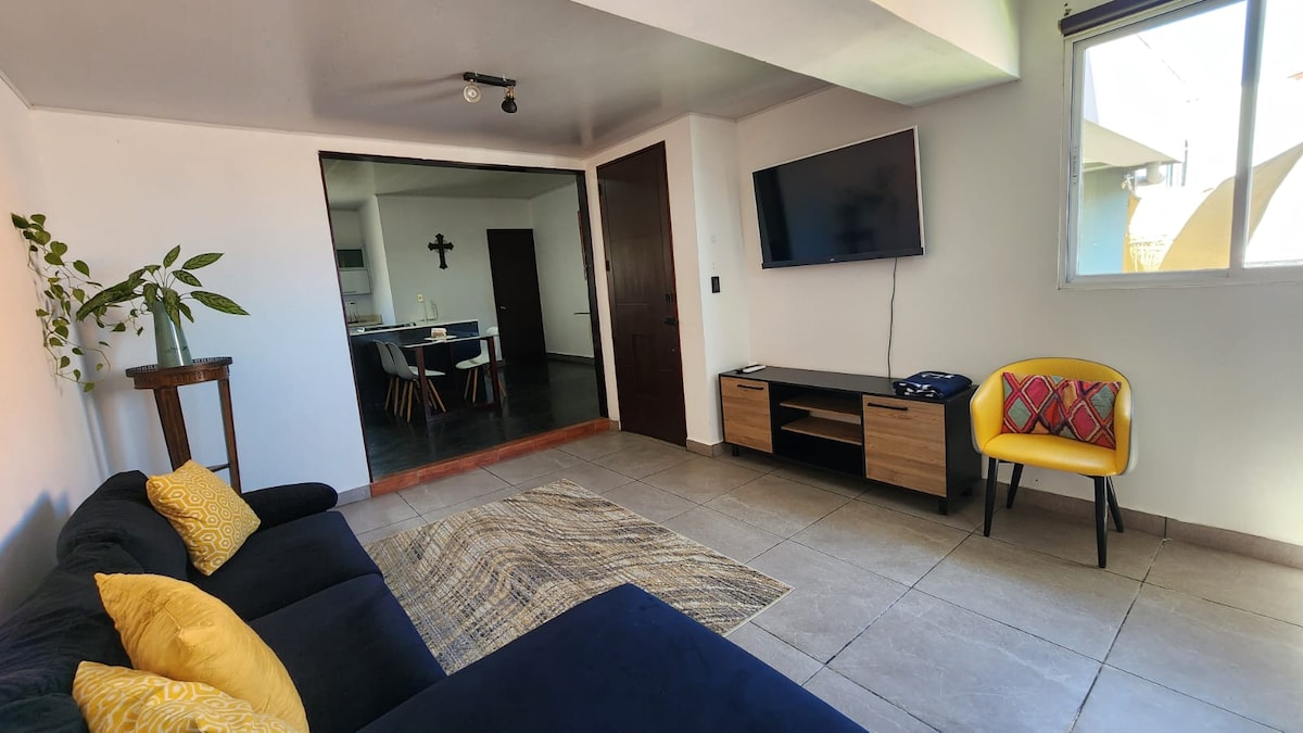 Frábær staðsetning í San Salvador! Aðeins steinsnar frá Plaza Presidente, Apartamento type Loft sem er fullbúið fyrir frístundir þínar eða viðskiptagistingu!! Þú munt finna: • 5G þráðlaust net • 55’’ snjallsjónvarp • Bluetooth-hátalara • Mesa leikir • Loftræsting • Kæliskápur • Gaseldavél • Ofn • Örbylgjuofn • Straujárn • Straubretti • Hárþurrka • Sturta • Rúllugardínur Íbúðin er búin nútímalegri borðstofu, eldhúsi, svefnsófa og 2 einbreiðum rúmum til að njóta dvalarinnar.