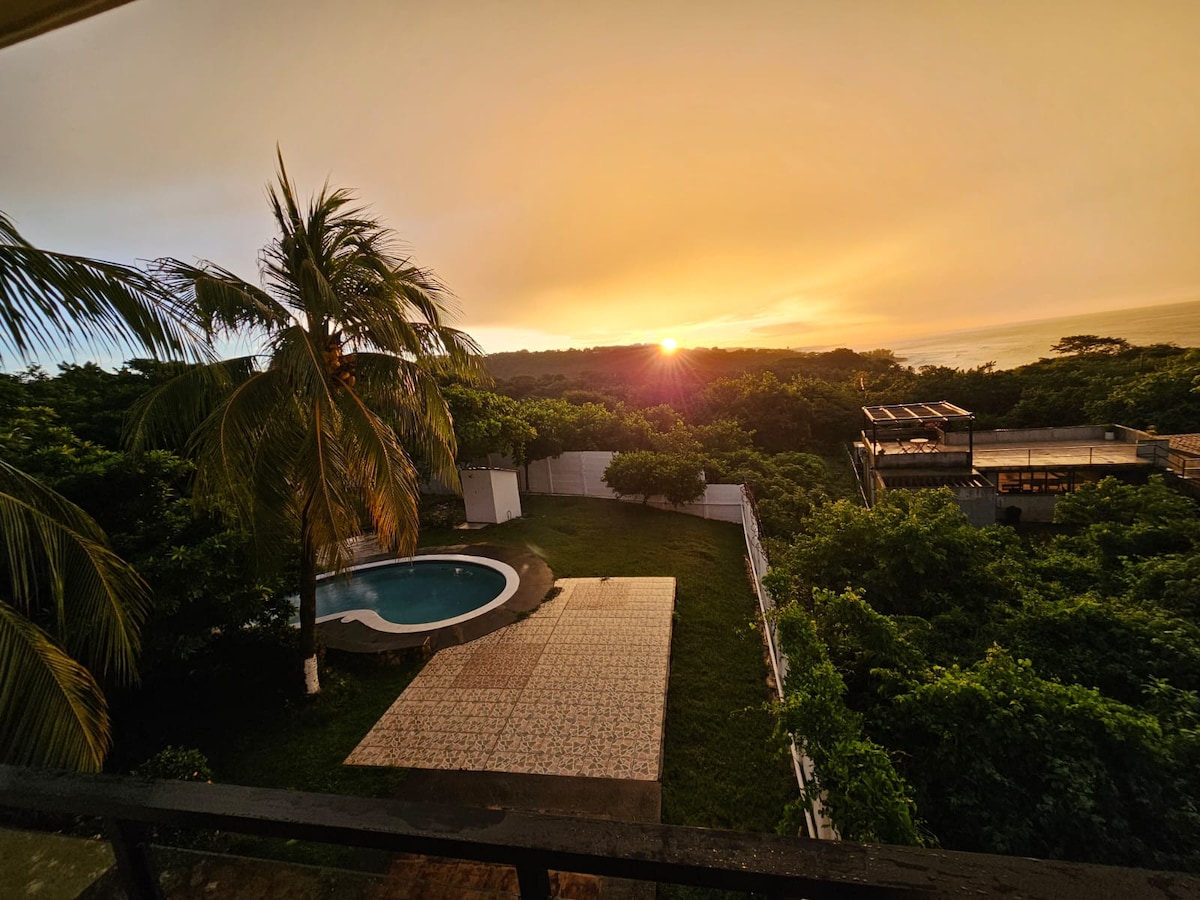 Vaknaðu með stórfenglegu sjávarútsýni í þessu friðsæla gistihúsi í lokaða samfélaginu Cerromar í Sunzal, sem er hluti af Surf City. Þetta blæbrigðaríka afdrep við klettana er hátt yfir El Tunco og El Sunzal og er tilvalið fyrir pör eða ferðalanga sem eru einir á ferð og vilja taka úr sambandi, hlaða batteríin og njóta landslagsins. Slappaðu af við einkasundlaugina, slakaðu á í hengirúmi eða farðu niður að brimbrettunum og kaffihúsunum við ströndina í stuttri akstursfjarlægð.