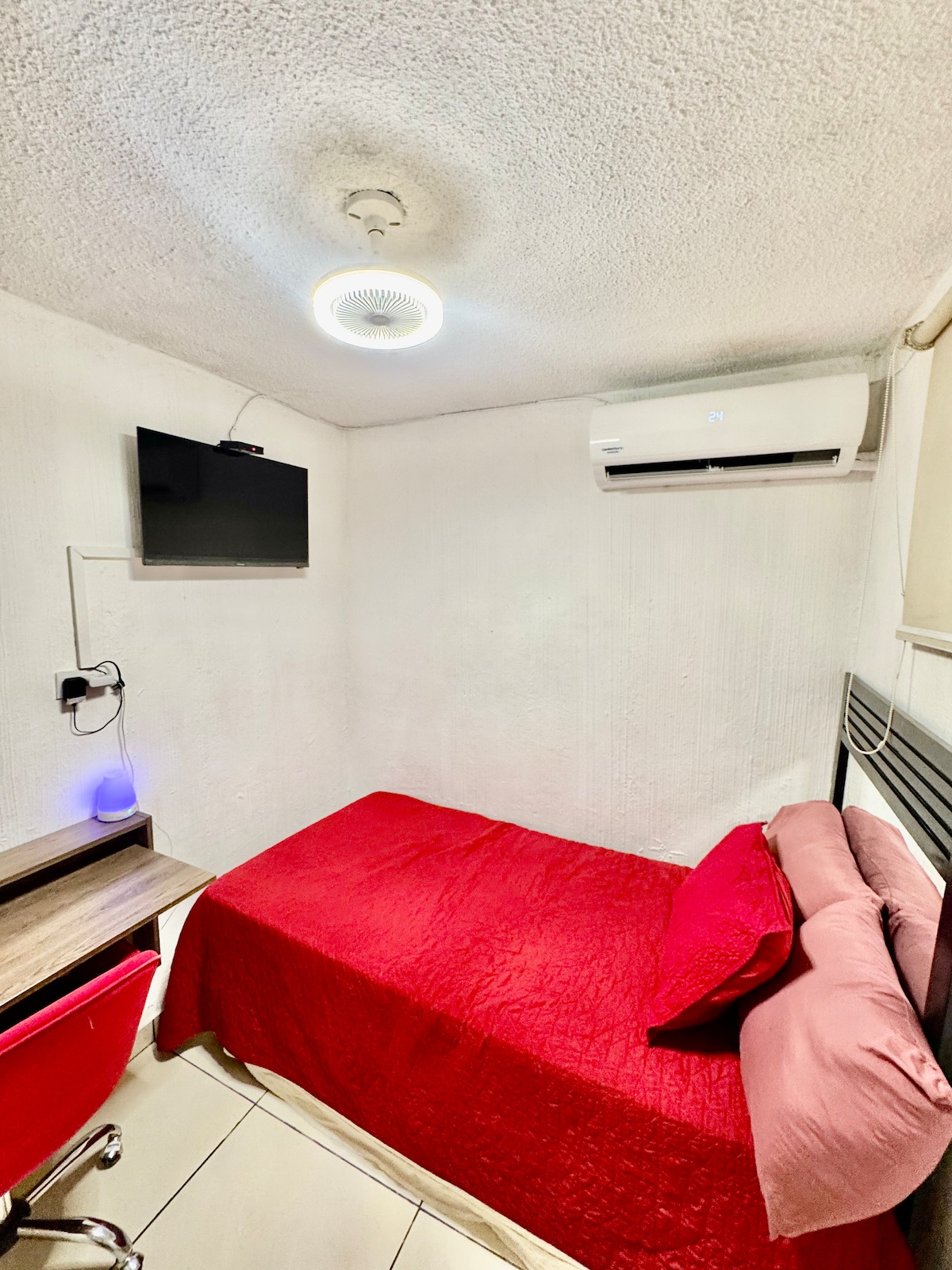 Si eres de los que disfruta viajar solo y amas tu privacidad, ven y disfruta de este alojamiento hecho para ti que está en una zona exclusiva de la Colonia Escalón. El alojamiento cuenta con aire acondicionado A/C, ducha caliente, estacionamiento, cable e internet para que disfrutes tu visita en la capital. Podrás disfrutar visitando los centros comerciales más famosos de la colonia Escalon y San Benito y tener acceso directo al Centro Histórico de la capital y demás atractivos de la capital.