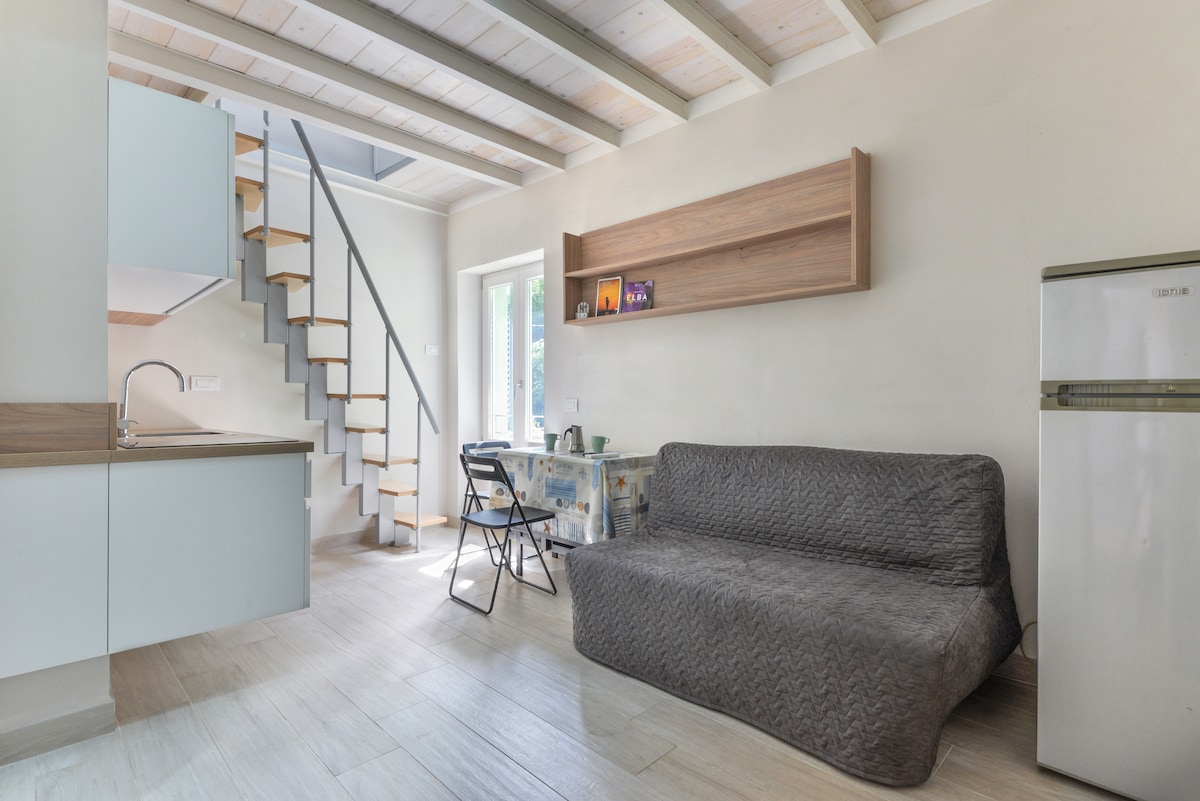Íbúðin rúmar allt að 6 manns, samanstendur af opnu rými með verönd með útsýni yfir vatnið, tveimur svefnherbergjum og tveimur baðherbergjum, það er staðsett á fyrstu hæð og hefur sér inngang. Byggð fyrir um öld síðan sem útihús á nærliggjandi „kastala“ og af þessum sökum kallað „Casa al Mare“. Endurnýjun og húsgögnum hefur verið lokið í ágúst 2021 og hefur verið lögð áhersla á notalegheit, þægindi, einfaldleika í notkun, orkusparnað og sjálfbærni í umhverfismálum