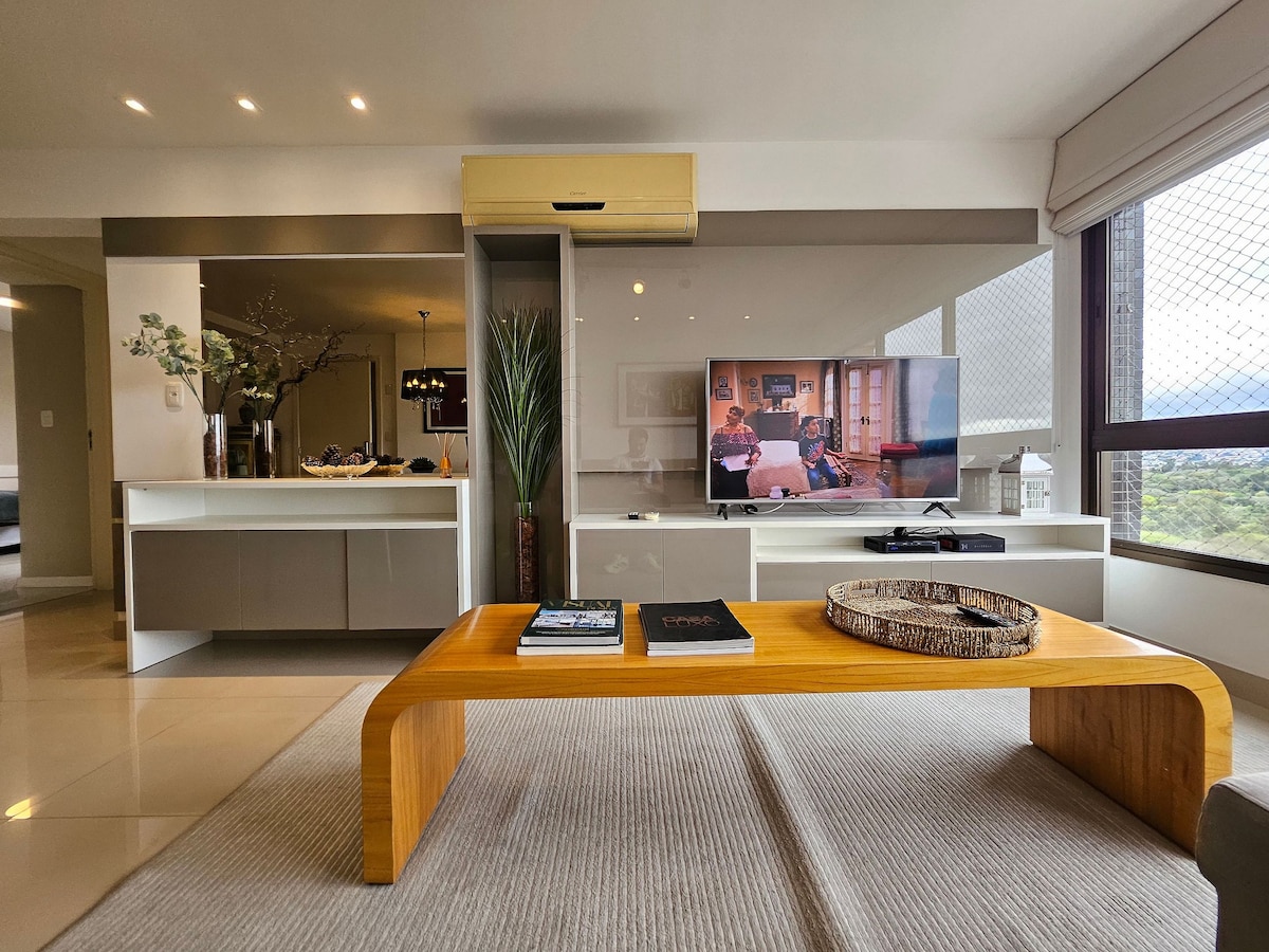 Gistu í stíl í nútímalegri, notalegri og fullkominni eign sem er tilvalin fyrir pör, viðskiptaferðamenn eða þá sem vilja þægindi, öryggi og einstaka upplifun. Það er staðsett inni í Barra Shopping Sul-hverfinu með nokkrum tómstundum, verslunum og matargerðarlist. Loftíbúðin býður upp á fullkomið umhverfi til að njóta frábærs sólseturs með forréttindaútsýni yfir Guaiba ána/vatnið. Fullbúin, innréttuð og smekklega innréttuð. Komdu bara á staðinn og njóttu lífsins.