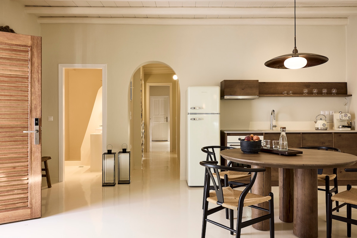 Sígilda svítan er heimili sem getur svo sannarlega farið fram úr væntingum þínum. Nútímalegt hús með Mykonískum arkitektúr og fullbúið fyrir ógleymanlegt frí. Við erum í um 2 km fjarlægð frá miðbænum og Super Paradise-ströndinni, sem er ein þekktasta og fallegasta strönd eyjunnar. Það er alltaf einhver til staðar sem getur hjálpað þér og gengið frá öllu sem þú gætir þurft á að halda. Einnig er um að ræða sameiginlegt svæði með sundlaug, sundlaugarbar og ókeypis líkamsrækt.