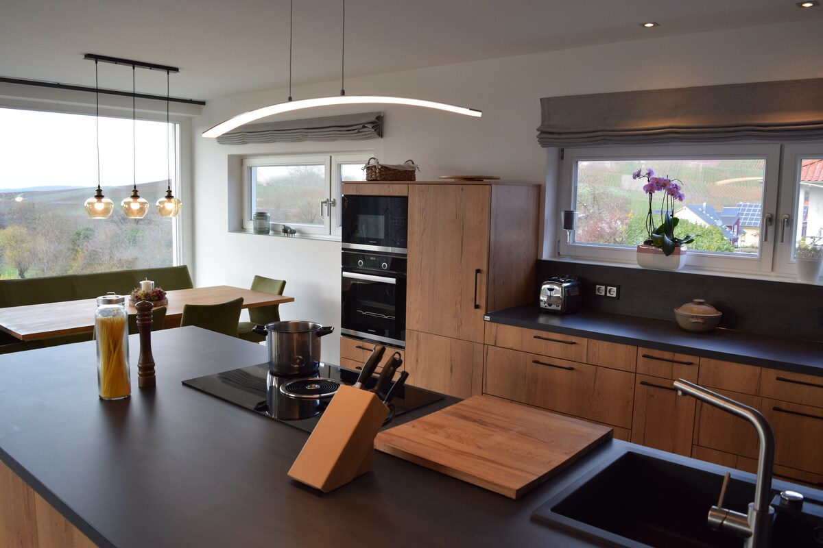 Hrein lífsgæði! Njóttu magnaðs sólseturs og friðsæls útsýnis í þessu stílhreina og vandaða gistirými með húsgögnum. Fullkomið fyrir rómantíska kvöldstund fyrir tvo eða þú getur bara slakað á á þessu rólega svæði. Hægt er að ná hraðbrautartengingunni Weinsberger Kreuz á 5 mínútum. Local Norma is located directly to our place. Því er ekki vandamál að gista yfir nótt af sjálfsdáðum. Hlakka til að fá þig í heimsókn