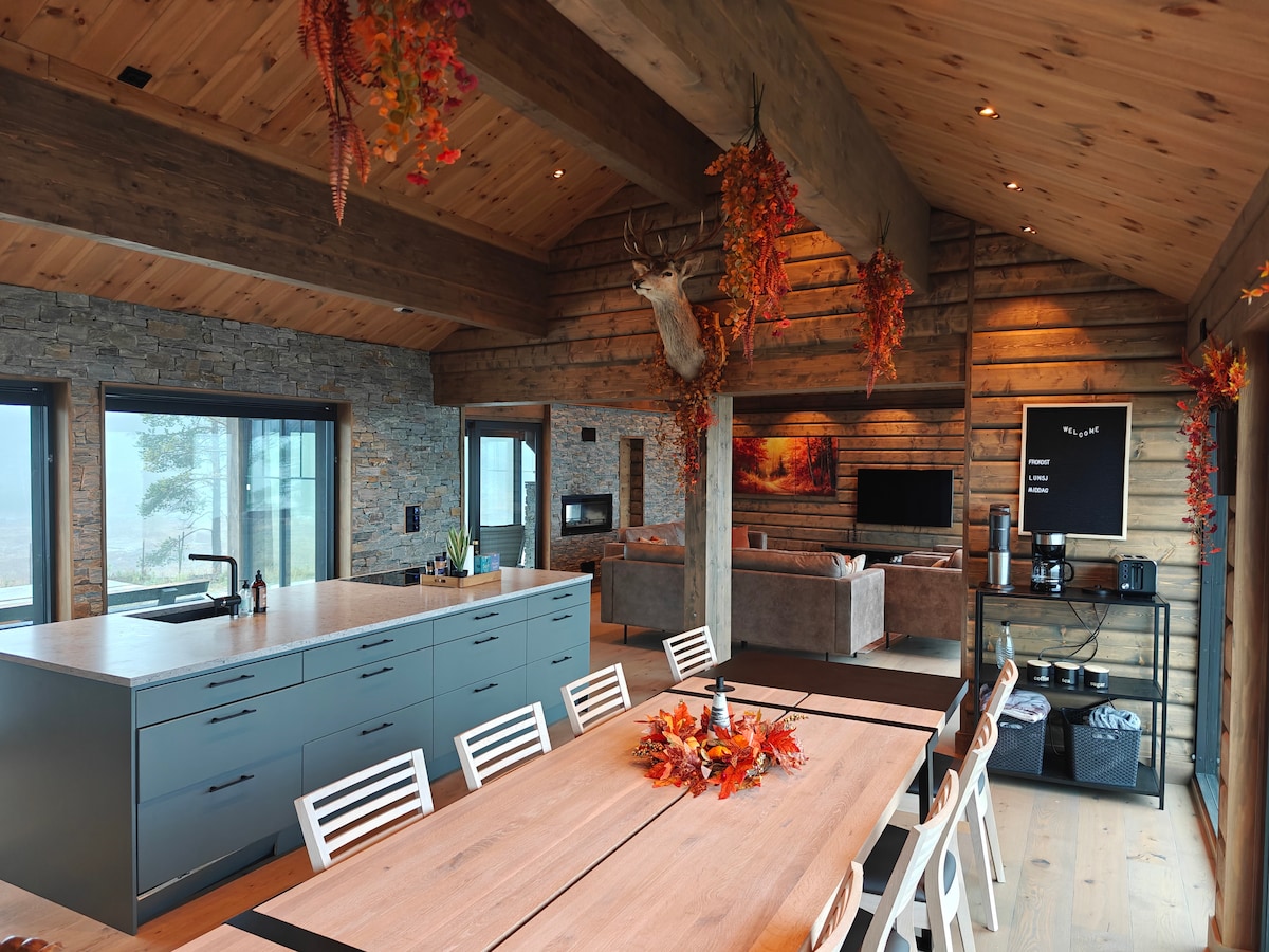 Notaleg og nútímaleg kofi með stórum gluggum, arineldsstæði og víðáttumiklu útsýni yfir snævi þökta náttúru. Fullkomið fyrir vetrarhelgar, fjölskyldugistingu og rólega daga í fallegu umhverfi. Njóttu hlýrra kvölda við arineldinn, góðra máltíða í kringum borðstofuborðið og rólegra morgna með útsýni yfir fjöll og skóga. Stutt í skíðabrekkur, göngustíga og aðeins 50 mín frá Þrándheimi.