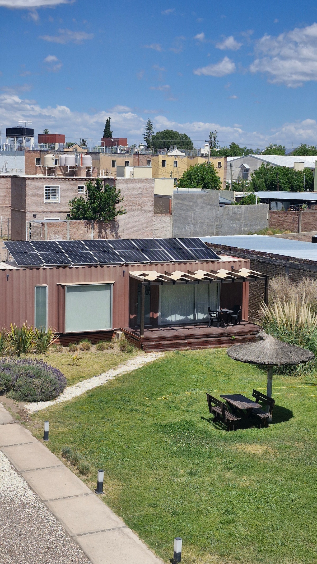 Módulo habitacional de 40m2, diseñado para ser habitado por turistas y construido en el año 2023. Cuenta con un dormitorio, baño completo y un espacio integral de kitchenette, estar y comedor . Además del lindo jardín, hay una galería equipada con dos butacas y mesa para poder disfrutar del sol mendocino… Se encuentra ubicado a 7 minutos en auto del centro. Y en el mismo terreno está la vivienda de mis padres ( a unos 60metros aprox.), quieren estarán a disposición cuando lo necesiten !