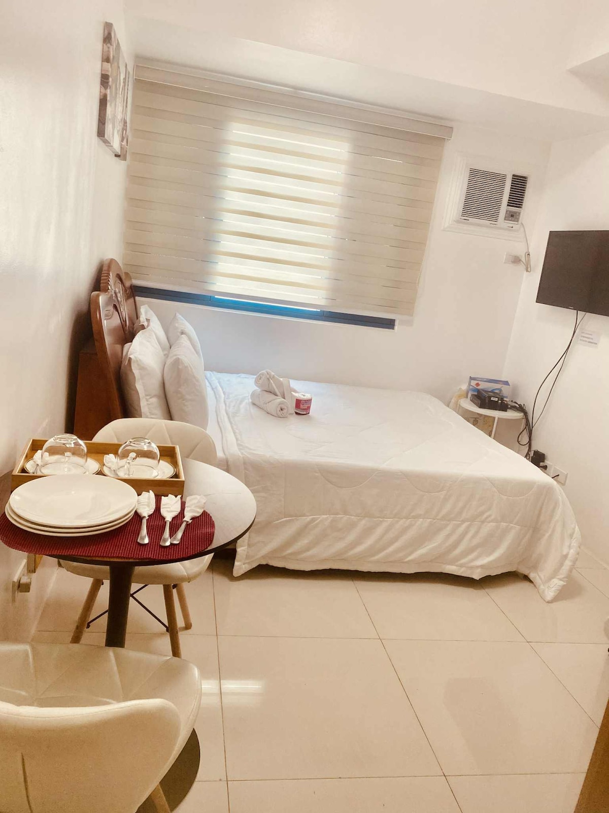 Urban Sleek whole studio unit fronting the US Embassy Nýlega opnað Verið velkomin í nútímalegu og notalegu stúdíóíbúðina okkar með mögnuðu sólsetri við Manila Bay. Eignin okkar er staðsett í hjarta Manila, steinsnar frá bandaríska sendiráðinu og stutt er í vinsæla staði eins og Intramuros, Luneta Park, Chinatown, Manila Hotel, verslunarmiðstöðvar og veitingastaði. Njóttu þæginda á staðnum, þar á meðal líkamsræktarstöðvar, sundlaugar og sánu, allt undir öryggisgæslu allan sólarhringinn. Heimili þitt að heiman!