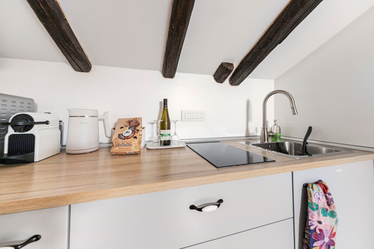 Stígðu inn í ævintýri og upplifðu töfra 15. aldarinnar. Þetta heillandi og glæsilega loftíbúð er fjársjóð listrænna smáatriða með stórkostlegu hvelfingu. Hér verður þú algerlega innsveipuð í hrífandi andrúmsloft þar sem þú nýtur tímalausrar heimsmyndar listar og ítalskrar handverkslistar.