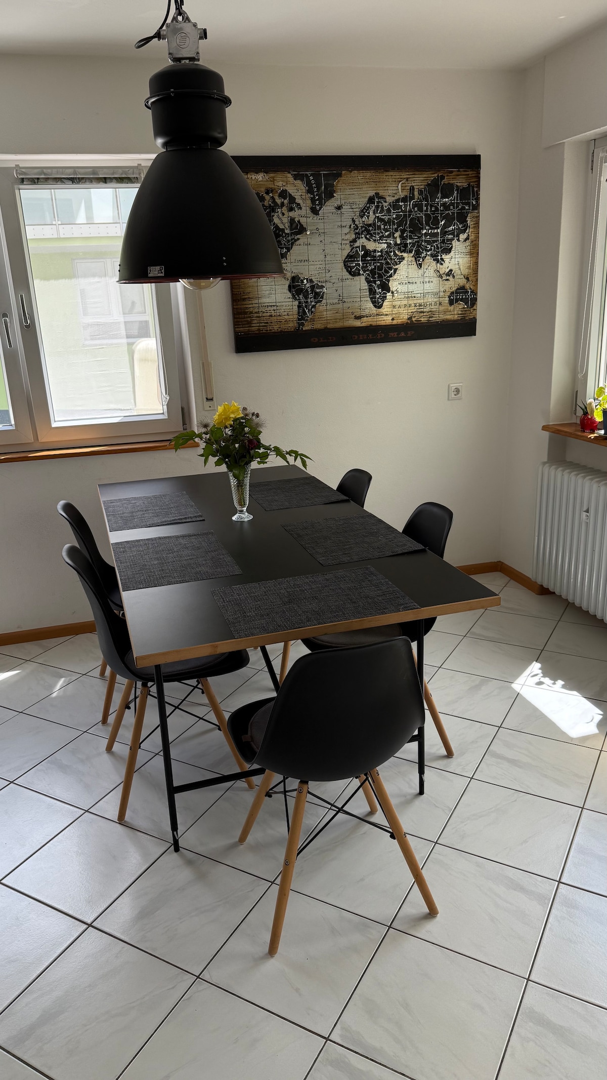 Íbúðin okkar er staðsett í Emmendingen – á miðju svæðinu Freiburg í Suður-Svartiskógi. Björt, hljóðlát íbúðin okkar, sem er 72 fermetrar að stærð, býður upp á nóg pláss fyrir allt að 4 manns og er nútímalega innréttuð. Auk rúmgóðs eldhúss og notalegrar stofu eru 2 svefnherbergi og baðherbergi í íbúðinni. Á stóru yfirbyggðu veröndinni getur þú notið sólarinnar í suðurhluta Baden og útsýnisins yfir garð bóndans okkar. Íbúðin er reyklaus.