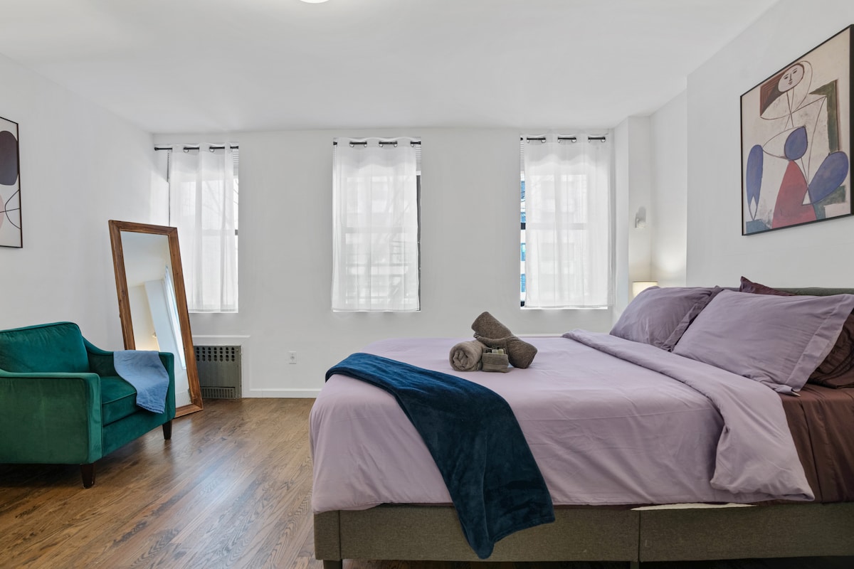 Experience the comfort of a spacious one-bedroom apartment that accommodates up to five guests. Located near Central Park, Times Square, and Fifth Avenue, this ideal spot offers convenience and proximity to some of New York's most iconic attractions. Perfect for both short and extended stays. Walk up on second floor. If you are uncomfortable with any sets of stairs then this may not be for you. (Don’t let the stairs deter you, it’s well worth it for this amazing unit in the heart of NYC)!
