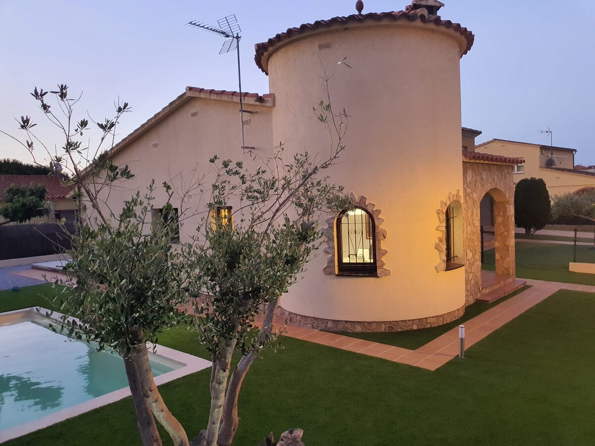 Hús með 3 svefnherbergjum (1 með hjónarúmi og 2 með tveimur einbreiðum rúmum hvort. ALLIR AÐILAR ERU BANNAÐIR TIL AÐ GERA EITTHVAÐ GOTT Útbúið eldhús. Nespresso-kaffivél, örbylgjuofn. Salerni með sturtu, gestasalerni. 300m2 verönd og garður Rúmföt og handklæði eru til staðar. Matvöruverslun í 500 metra fjarlægð (Dagleg pressa, slátrarabúð, .) Næsti flugvöllur Girona (GRO) **Ferðamannaskattur er ekki innifalinn í verðinu, greiðist með reiðufé á komudegi, (0,99 € p.p. nótt)