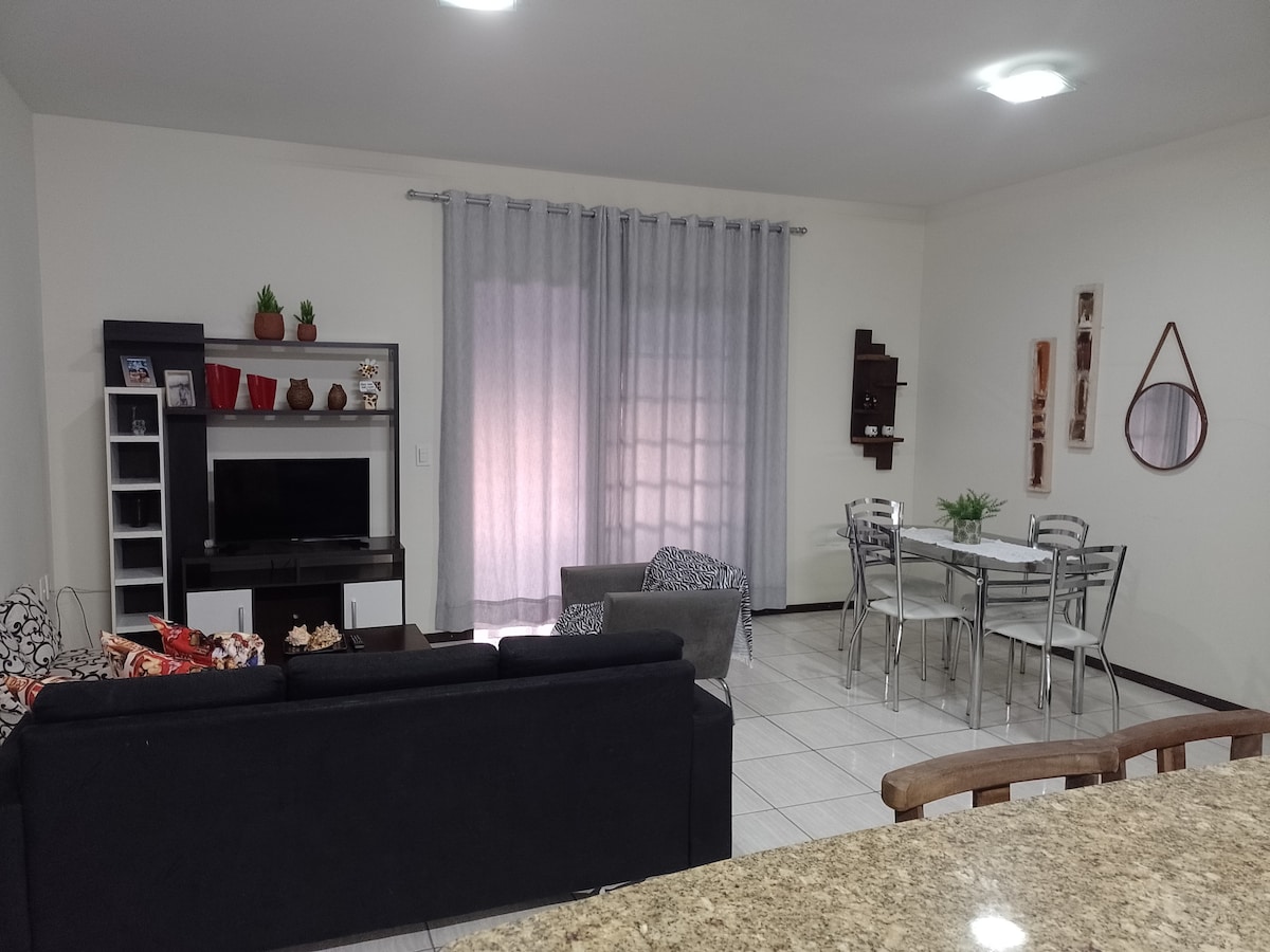 Notaleg og nútímaleg íbúð, tilvalin fyrir fjölskyldur sem vilja þægindi og ró í nokkurra metra fjarlægð frá sjónum. Að hafa sem mismunadrif á sælkerasvæði fyrir litlar samkomur sem innihalda: - Loftkæling og húsgögn skipulögð í hverju herbergi; - Fullbúið eldhús og samþætt við sælkera útisvæðið; - Innbyggð stofa og borðstofa (kapalsjónvarp og internet); - Þvottavél/þurrkari og hárþurrka í boði; - Rúmföt, handklæði og salernispappír í boði.