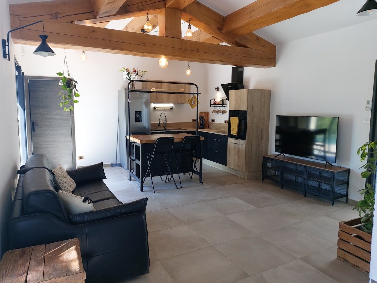 Þetta algerlega sjálfstæða og einkarekna tvíbýli með opnu 70 m² millistykki í viðbyggingu hússins okkar er þekkt sem einn af bestu bnb á Avignon-Sorgues! Þú vilt: njóttu kyrrðar, sofðu í king size rúmi, breiddu fæturna í fallegum þægilegum sófa, kvöldverði við alvöru borð: Það er hér! Verðinu er breytt í samræmi við fjölda fólks, sveigjanlegar aðstæður, vinalegar móttökur og gæði eru til fyrirmyndar tryggð!