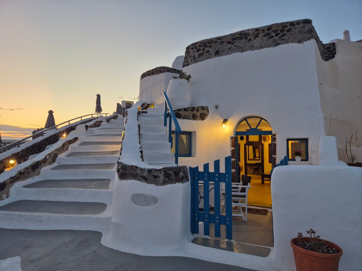 Revelis Canava er falleg villa í hellisstíl í miðri Fira en samt í burtu frá krýndum stöðum. Í rúmgóðu og notalegu umhverfi getur þú slakað á og notið eyjunnar Santorini. Veröndin, með setusvæðinu og upphituðu smálauginni, er tilvalinn staður til að fylgjast með mögnuðu útsýni yfir Caldera, frábærum sólseturslitum og afslappandi landslagi. Annað svefnherbergið, sem er hellisrúm og sundlaugin, eru tilvalin fyrir börn.