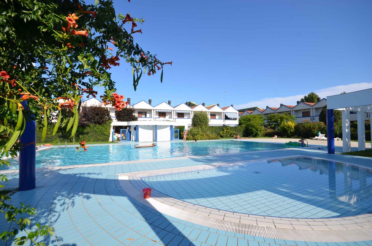 Villan er hluti af samstæðu umkringd gróðri með aðgangi að sundlauginni. Það er innréttað í nútímalegum stíl, það hefur: loftræstingu, bílastæði og arinn fyrir stórkostlegar grillveislur. Það samanstendur af: stofu með tvöföldum svefnsófa, eldhúskrók, hjónaherbergi, baðherbergi með sturtu. Það er í 6 km fjarlægð frá ströndinni, vatnagarðinum og dýragarðinum. Við getum skipulagt fallegar bátsferðir til Marano Lagoon, Trieste, Grado, Aquileia og Grado.