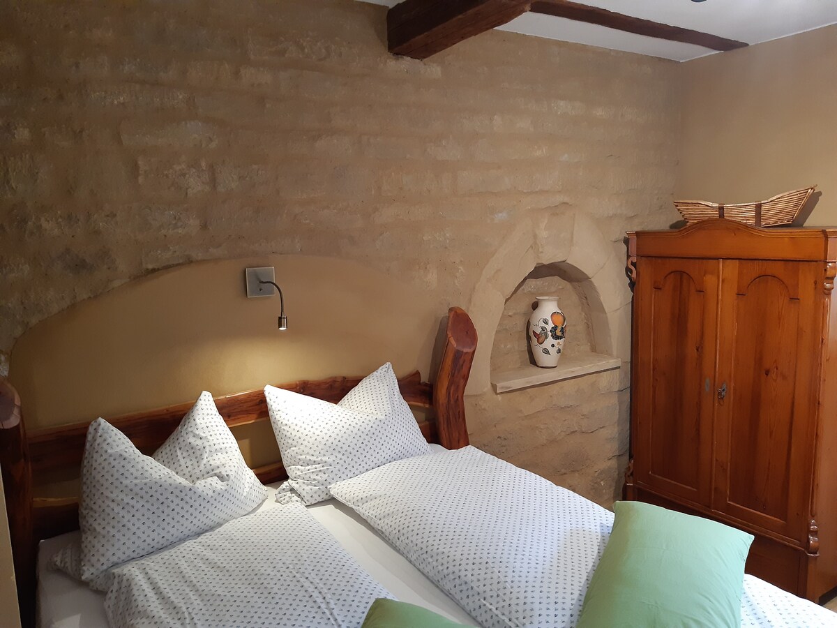 Liebevoll restaurierte und sanierte Ferienwohnung mit 52 qm in einer denkmalgeschützten Hofanlage mit Cottage. Im Zentrum Thüringens und Deutschlands, mit dem Auto in 5 Minuten nach Arnstadt (J.S. Bach), 15 Minuten nach Erfurt, 25 Minuten nach Weimar (Goethe/ Schiller) Unesco Erbe, 20 Minuten nach Gotha (Ressidenzstadt) oder 10 min im Thüringer Wald und der Avenida Therme Hohenfelden.