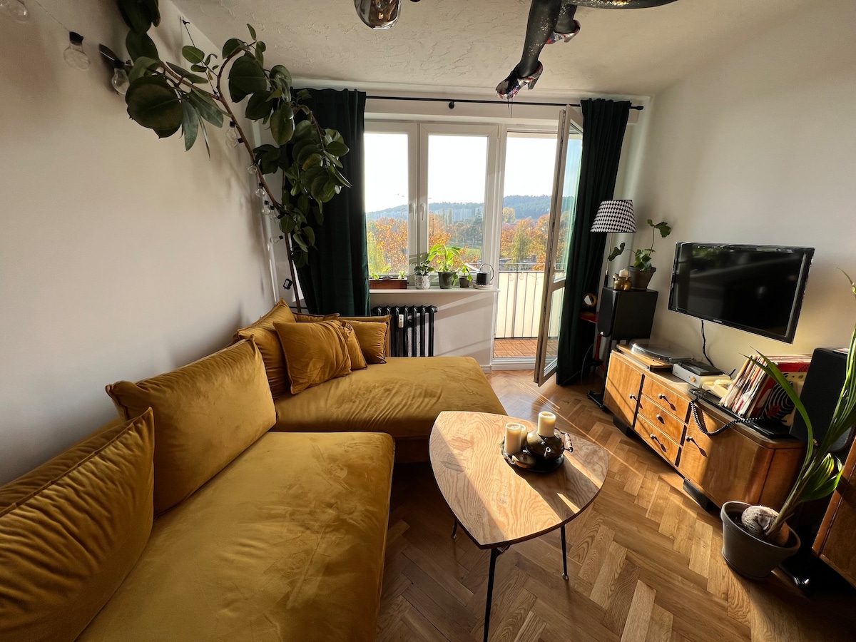 Ég býð þér í mjög notalega íbúð, innréttaða í sjómannsstíl á Płyta Redłowska í Gdynia. Íbúðin er með tveimur herbergjum, þar á meðal svefnherbergi með stóru rúmi 160x200 cm, með svölum. Frá eldhús- og stofugluggunum er fallegt útsýni yfir Gdańsk-flóa og Hel. Þú getur haft það eins og heima hjá þér með því að nota allan búnaðinn. Ef þú vilt, náðu í ferðalög, skoðaðu myndasafnið, hlustaðu á góða tónlist. Þetta er tími fyrir þig, nýttu hann með því að ganga á ströndinni,:) Ég býð þér