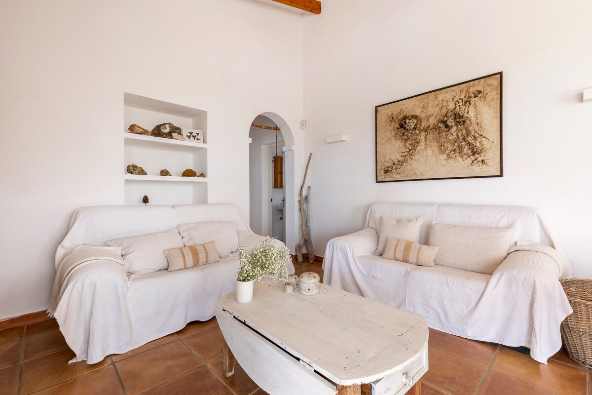 Þessi arkitektahannaða villa er einstök fyrir sjávarútsýni, smekklega valin húsgögn, ótrúleg rými, hátt til lofts, útisvæði, grænmetisgarð, lituð slétt steypt gólf og sítrónutré. Allt hefur verið hannað með ljós og loftflæði í huga. Þessi villa er algjörlega óvenjuleg í hönnun sinni, arkitektúr og staðsetningu, aðeins 5 mínútur frá Binisafua ströndinni. 1 svefnherbergi, 1 baðherbergi, 2 svefnherbergi. Verið velkomin
