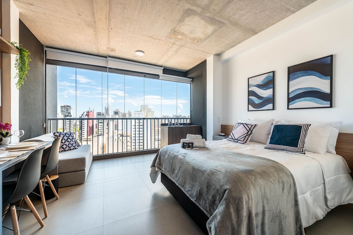 Finndu fullkominn stað í Vila Mariana. Vaknaðu á morgnana með dagsbirtu og slakaðu á eftir að hafa skoðað þig um í borginni. Tilvalið fyrir pör eða ferðalanga sem eru einir á ferð. Hér færðu heimili að heiman. Við erum með loftræstingu, líkamsspegil, síað vatn, fullbúið eldhús, vinnuaðstöðu, straujárn, hárþurrku og fleira. Athugið: Nýbygging, með fyrirvara um suð að degi til.