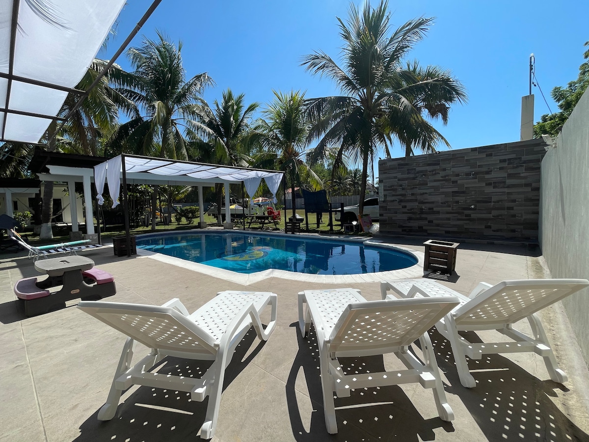 Kimali Beach House er staður til að slíta sig frá hávaða borgarinnar. Hverfið okkar er mjög kyrrlátt. Við erum með fótboltavöll og blakvöll, sundlaugin er fullkomlega einka með letilegum stólum til afslöppunar og eldstæði fyrir kvöldspjall Bara nokkrar mínútur frá ströndinni ganga, án þess að þurfa að yfirgefa nýlenduna eða í gegnum upptekinn götur og 3 mínútur eftir Iztapa brú, svo staðsetningin er frábær nálægt!