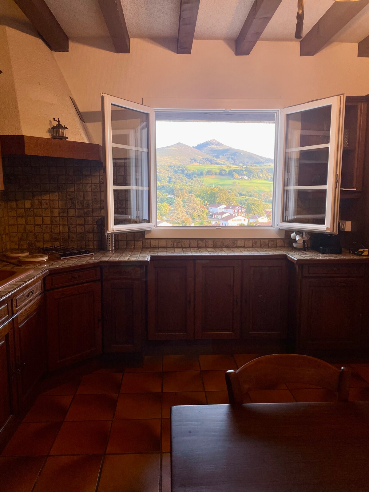 Du samedi 18 juillet au samedi 22 août 2026: séjour minimum de 7 jours ( arrivée le samedi). Au sein d'une ancienne maison basque ( habitée par ses propriétaires) située à l'écart du centre bourg et au bout d'une longue allée, dominant le village et les montagnes : calme et tranquillité pour ce T2 de charme rénové, avec terrasse privée. Vue dégagée et verdoyante. Idéal pour curistes ou couple en recherche de calme afin de se ressourcer. Ensemble des commodités au village.