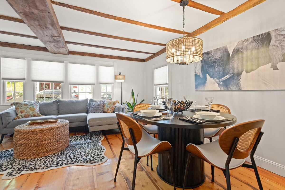 Kick back and relax in this quaint refurbished carriage house, centrally located in Beverly, Massachusetts. The first floor offers a kitchen space (complete with a toaster oven and mini fridge) and a dining area, as well as a spacious living room set that is perfect for nights in after a day of exploring. If you prefer, the patio also has cozy outdoor seating! Upstairs, you can find a comfortable Queen-sized bed, a private bathroom, and a desk space that's perfect for working from home.