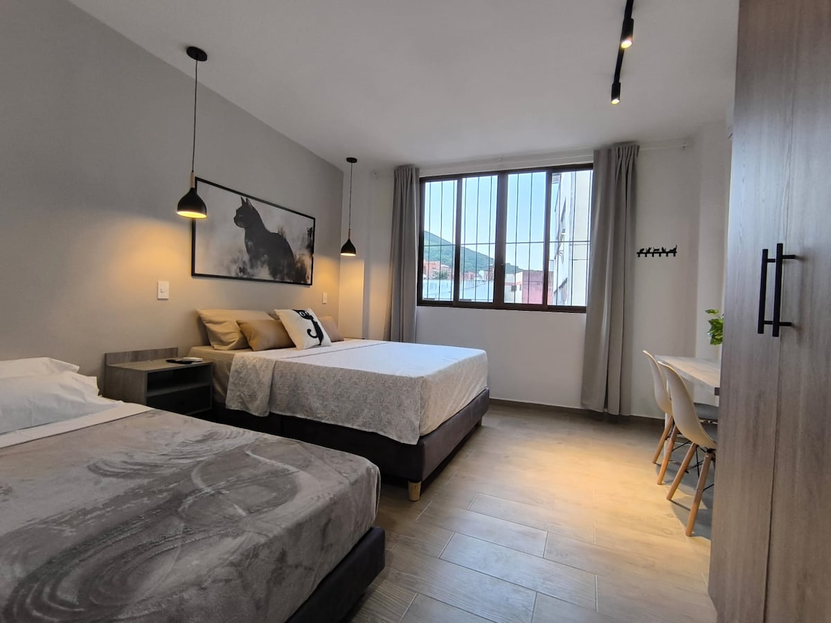 Suite amplia para 3 · AC · Cocineta · Boulevar Rio
