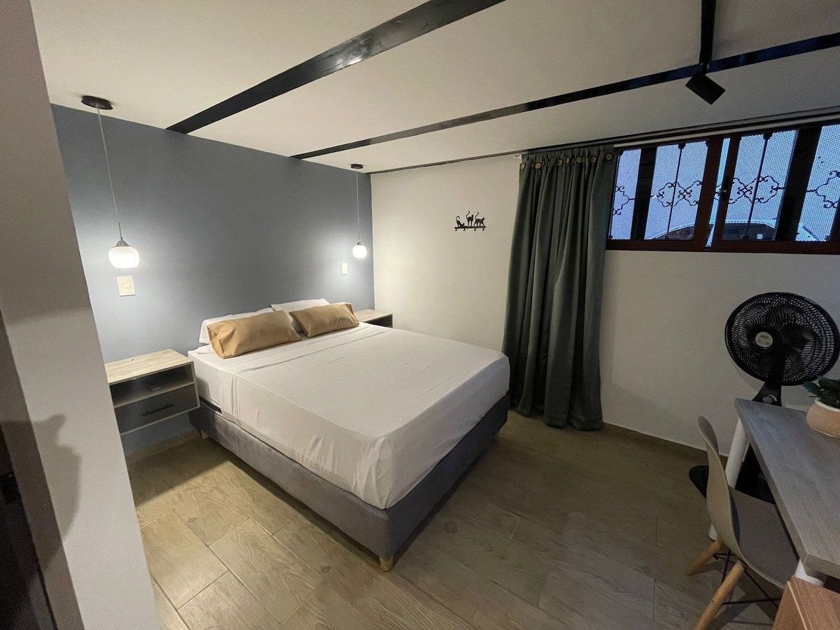 Habitación privada cómoda y bien ubicada en el corazón histórico de Cali, ideal para viajeros que desean explorar caminando lo mejor de la ciudad. Cuenta con baño privado, ventilador, TV, escritorio, WiFi y cocineta equipada con microondas, cafetera y nevera. A media cuadra del Boulevard del Río, 4 museos alrededor, la Calle del Sabor, restaurantes, bares y el Gato de Tejada. Ubicación estratégica en zona turística, cultural y gastronómica. Cerca a San Antonio, Granada y Peñon.