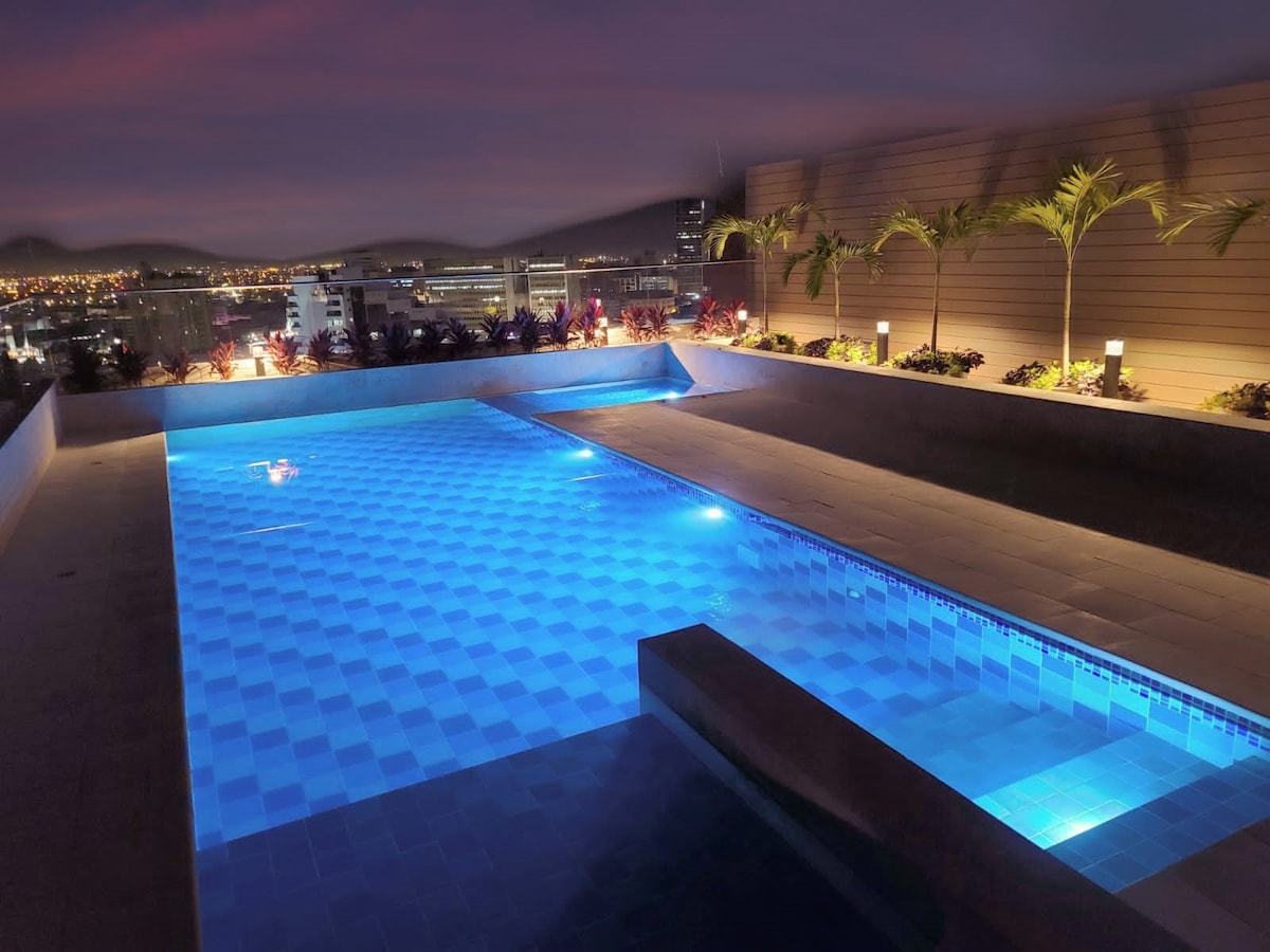 Njóttu líflegasta hverfis Cali í þessari glænýju risíbúð með frábærum svölum og ótrúlegu útsýni. Þessi 60m2 (640 fm), 1 rúm/1,5 baðherbergja íbúð er róleg og notaleg og kemur með allt sem þú þarft til að njóta endalausa sumars Cali. Hayedo-byggingin er ein af bestu byggingum borgarinnar fyrir skammtímaútleigu með þægindum á borð við móttökuborð sem er opið allan sólarhringinn, ókeypis bílastæði með beinum aðgangi að lyftum, öryggi og eftirliti, fundarherbergi með hröðu þráðlausu neti, þaksundlaug og líkamsrækt.