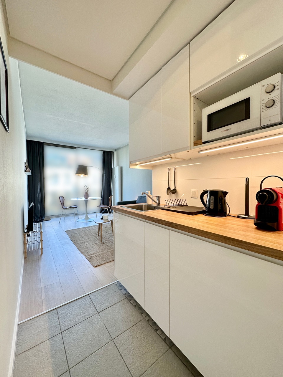 Þægindi, glæsileiki, rými, staðsetning og búnaður eru bara nokkur orð til að draga saman þessa undraverðu íbúð á „hype“ staðnum í Brussel. Eitt mjög stórt svefnherbergi sem snýr að innri forgarðinum (mjög hljóðlátt) með baðherberginu innfelldu. Aðskilið salerni. Algjörlega opið rými með eldhúsi og borðstofu í stofu á einu mjög stóru svæði. Svefnsófinn í stofunni er með aukadýnu til að auka þægindin.