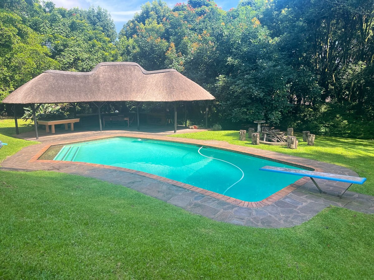 We welcome you to "The Lapa". Enjoy a unique tranquil, private blissful Kwa-Zulu Natal Hospitality experience, sleeping under thatch. Here you can relax and enjoy the sights and sounds of our little piece of paradise. Nestled in a green belt, Valley of a Thousand Hills, The Lapa is centrally located situated in an area that is rich in birdlife, sunbirds, purple crested lourie, occasionally Serval cats, Duiker. The Spotted Eagle Owl often hoots at night. We refer you to Other Details to Note .