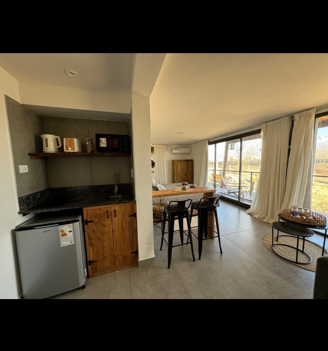 Okkur er ánægja að fá þig í La Viñita Wine Lodge, í Valle de Uco, La Consulta, nefnt sem fyrsta vínþorpið í Argentínu. Loftíbúð milli vínekra, verönd með heitum potti og yfirgripsmiklu útsýni yfir fjöllin, þú getur séð sólarupprásina, sólsetrið og umhverfið umkringt náttúrunni. Við erum með eldavél til að njóta sjarma sólsetursins. Á La Viñita er virðing fyrir umhverfinu, þægindum og nánd í forgangi hjá okkur og veita gestum okkar ógleymanlega upplifun.