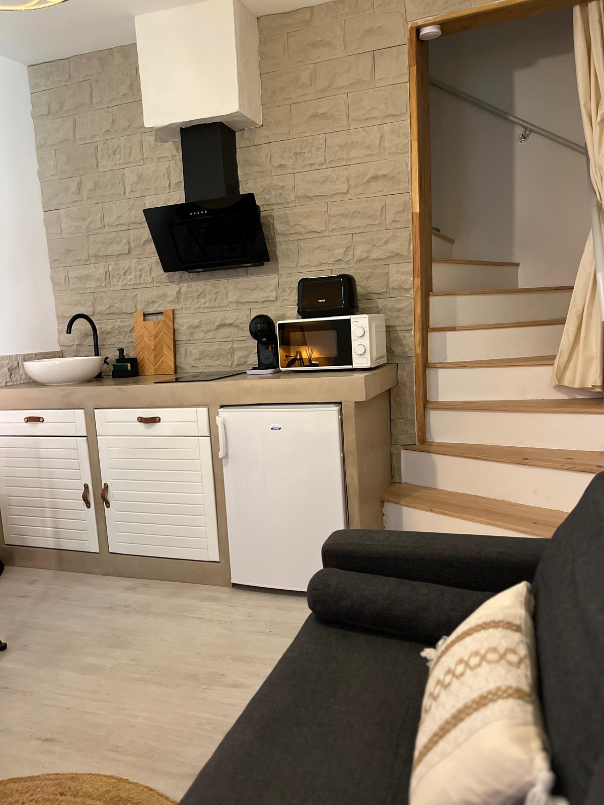 Maison Emye, ósvikinn perla og staður fullur af persónuleika í hjarta Montpeyroux. Kynnstu björtu eldhúsi sem nær yfir tvær notalegar hæðir. Hún er með baðherbergi með stóru baðkari og rúmgóðri stofu með berum veggjum, háu lofti, svefnsófa og kyrrlátum svefnaðstöðu. Einnig er til staðar viðarborð og einkaverönd til að baða sig undir stjörnubjörtum himni. Á efri hæðinni endurspeglar hvert einasta smáatriði ró fágaðrar svítu en þar er myndbandskasti og sturtukrókur fyrir tvo.