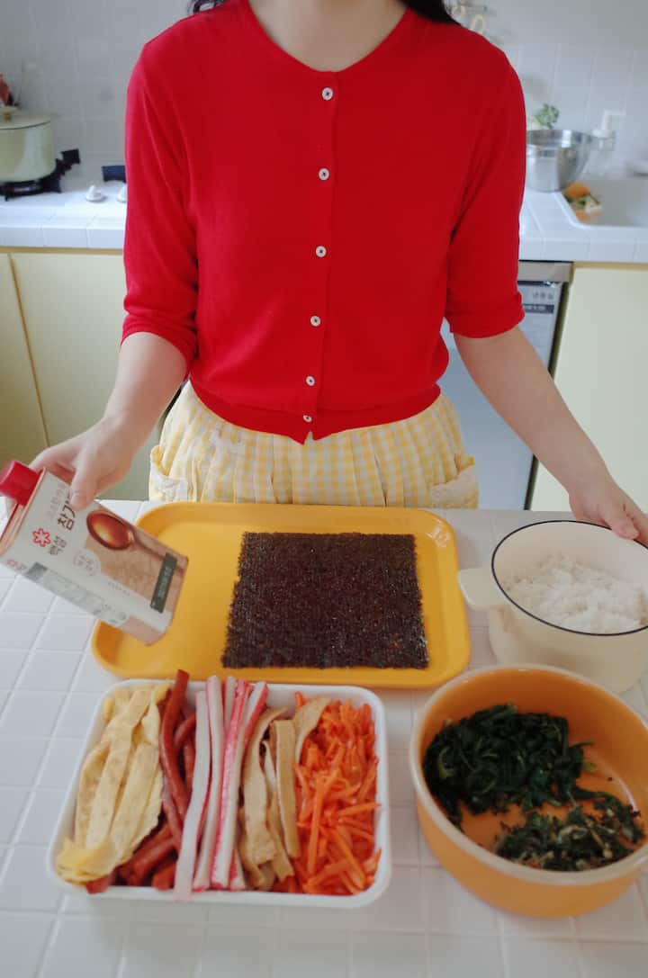 Gerðu kóreska sálarmatinn „Kim Bap“ í eldhúsi tilfinningasamt sem kokkur, borðaðu hann saman og spjallaðu. Njóttu einnig tilbúinna hefðbundinna eftirréttanna.