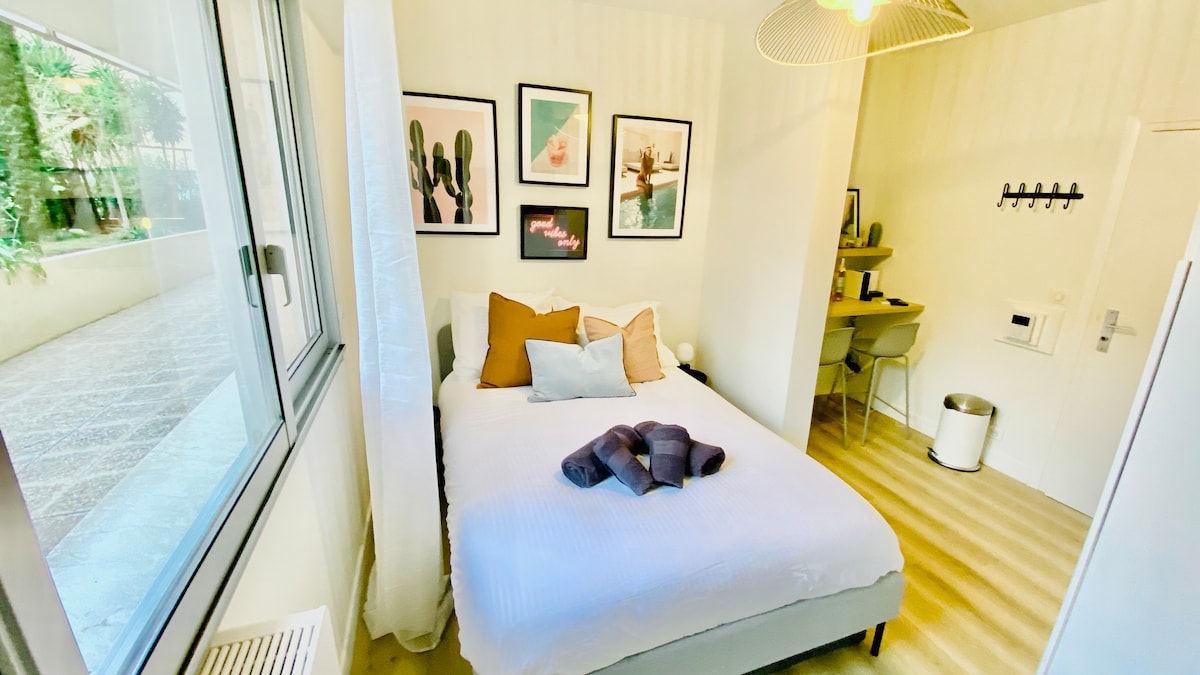 Nýuppgerð stúdíóíbúð í sögufrægri og hefðbundinni byggingu sem var byggð árið 1834 þar sem hinn þekkti franski listamaður Henri Matisse bjó og málaði nokkur meistaraverk eins og The Bay of Nice árið 1918. Frábært sjávarútsýni frá svölunum. Beau Rivage-strönd og afslöppun við útidyrnar. Í nokkurra mínútna göngufjarlægð frá hjarta borgarinnar, gamla bænum (frábær á daginn og kvöldin), mörgum veitingastöðum og verslunarsvæðum. Notalegt og bjart þar sem íbúðin snýr út að South. 32 m2 herbergi (344ft2)