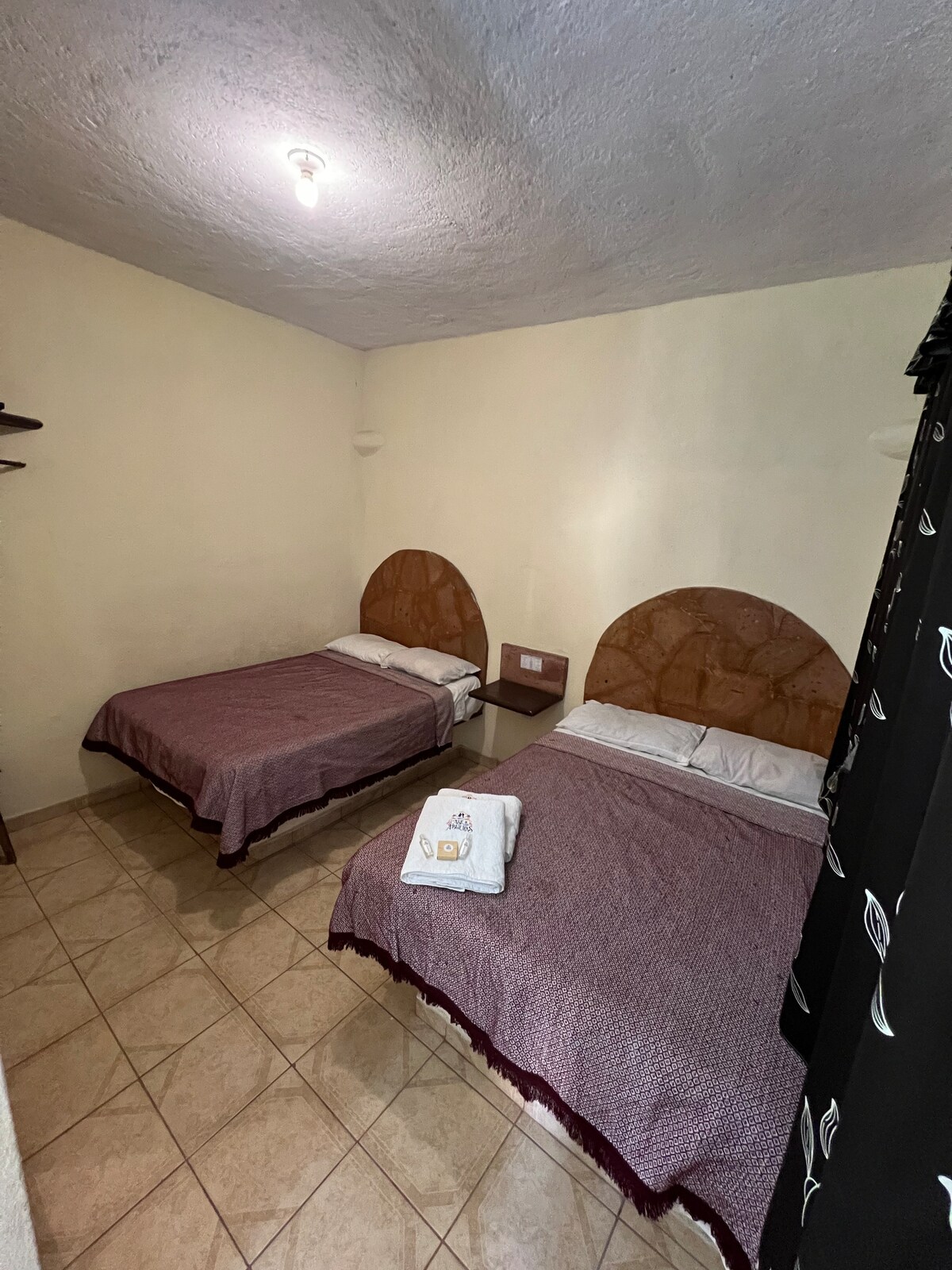 El es una recamara con bardas de piedra que la hacen fresca pero a la vez tibia, es también silenciosa con todo y que da a la calle. Se duerme muy bien. Tiene techo de catalana muy alto. TV y Refrigerador Cuenta con servicios básicos, wifi, café y té. Para 5 personas a espaldas del templo principal y a cuadra y media del centro de la ciudad.