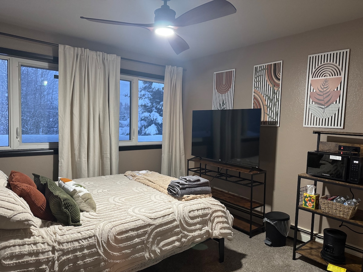 This is a newly remodeled 2-bed, 1-bath unit in a duplex in Fairbanks, Alaska’s Golden Heart City. This charming retreat blends modern comfort with cozy warmth. Enjoy a fully equipped kitchen, unwind in the inviting living space, and enjoy all the essentials for a stress-free stay. Minutes from local shops, restaurants, and attractions, and just a short drive to outdoor adventures, it’s the perfect base for Northern Lights chasers, city explorers, and anyone seeking a memorable Alaskan getaway.