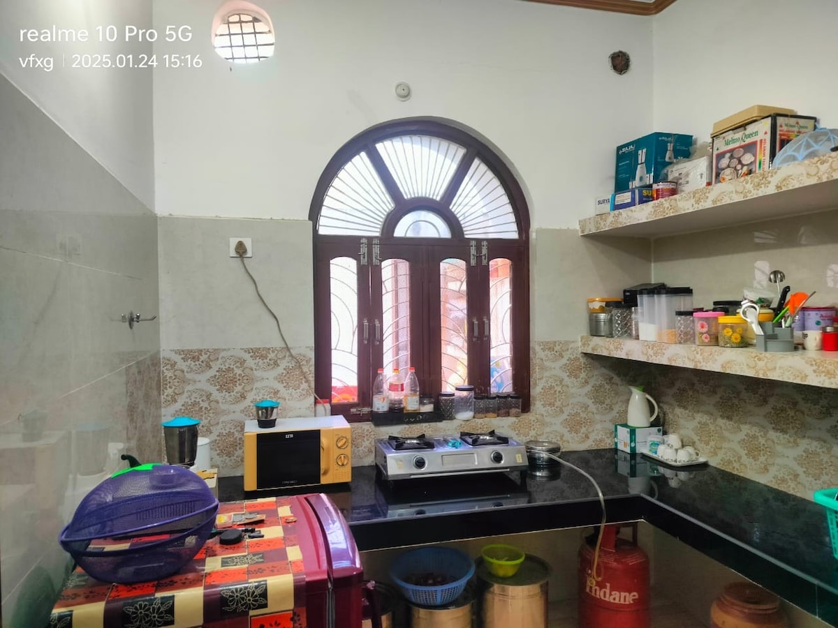 Íbúðin mín er mjög nálægt öllum helstu hofum Ayodhya. Það er staðsett í Ramkot-svæðinu við hliðina á Divya Sheesh Mahal-hofinu. Það er nýlega byggð íbúð með miklu öryggi, öryggi, hreinlæti og hreinlæti. Svefnherbergi 1 - Kælir + Vifta + Rúm Svefnherbergi 2 - loftræsting + vifta + rúm Eldhús og 2 þvottaherbergi Frá Kanak Bhawan - 100m Frá Hanuman Garhi - 200m Frá Ram Janam Bhumi - 500m ●Scooty í boði á leigu ● Nuddstóll í boði ● Gæludýr leyfð ● Ógift pör leyfð Með kveðju,