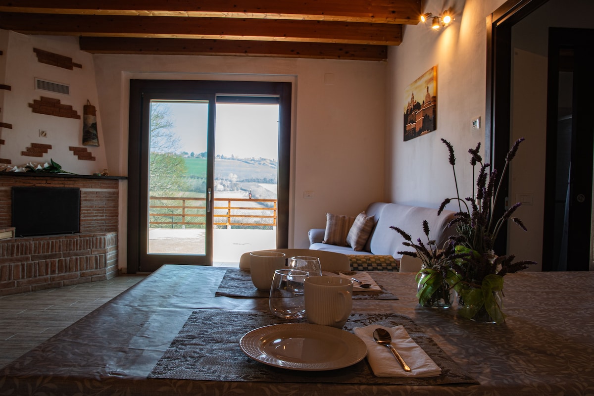 La casetta er lítil íbúð úr bóndabæ í Marche-stíl. Hefðbundinn húsbúnaður endurskoðaður á nútímalegan hátt og notkun náttúrulegra efna gerir hann ósvikinn, hlýlegan og notalegan. Það er á jarðhæð með útsýni yfir stóra grasflöt með útsýni yfir grænar hæðir. Hér er eldhúskrókur með ísskáp, vaski, tveimur rafmagnsplötum og örbylgjuofni. Afdrep þar sem þú getur upplifað hressandi augnablik í truflandi náttúru og kynnst ríkulegu svæði